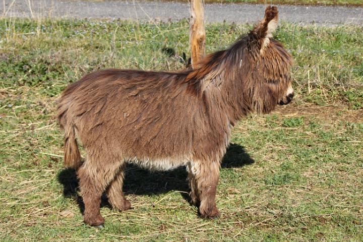 Opale, cette superbe ânesse microminiature gris clair avec une tête très expressive et un caractère en or, est née le 4 février 2024 à 8H25 du matin après 11 mois et 15 jours de gestation. La naissance s'est passée sans aucun problème, parfait, rien que du bonheur. C'est une boule d'amour. C'est la soeur de notre microscopique mâle reproducteur Lutin qui à 2 ans et demi ne mesure que 58 cm, c'est incroyable. Sa génétique est remarquable. Sa maman Rose est une ânesse rouge clair woolly de seulement 65 cm , fille de LN Red Laser, rouge de 65 cm et petite-fille de Valentine 69 cm notre woolly hors du commun. Quant à son papa, il s'agit de notre Filou reproducteur pie de seulement 62 cm. Cette petite merveille promet pour l'avenir. Elle partira comme future reproductrice chez notre amie Isabelle de Pornic qui a un magnifique élevage d'ânes miniatures, les Minis de la Douce Vie. Vendue.